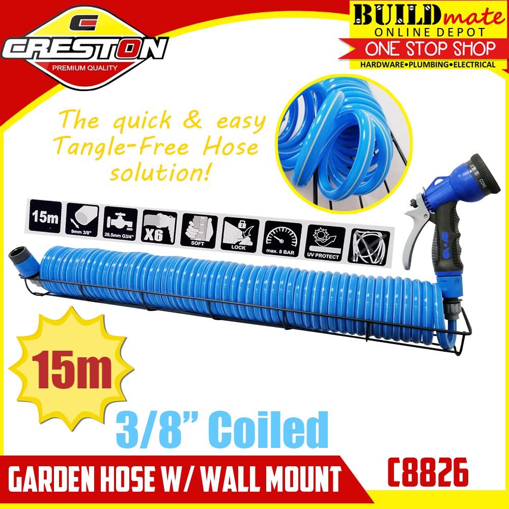 Creston Coiled Garden Hose W Wall Mount 3 8 15meter C8826